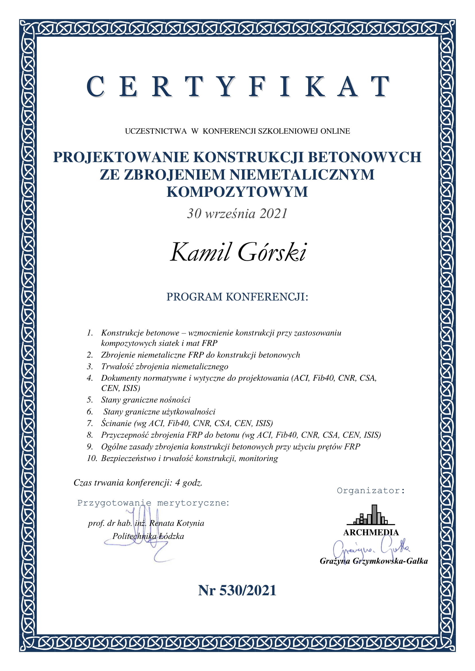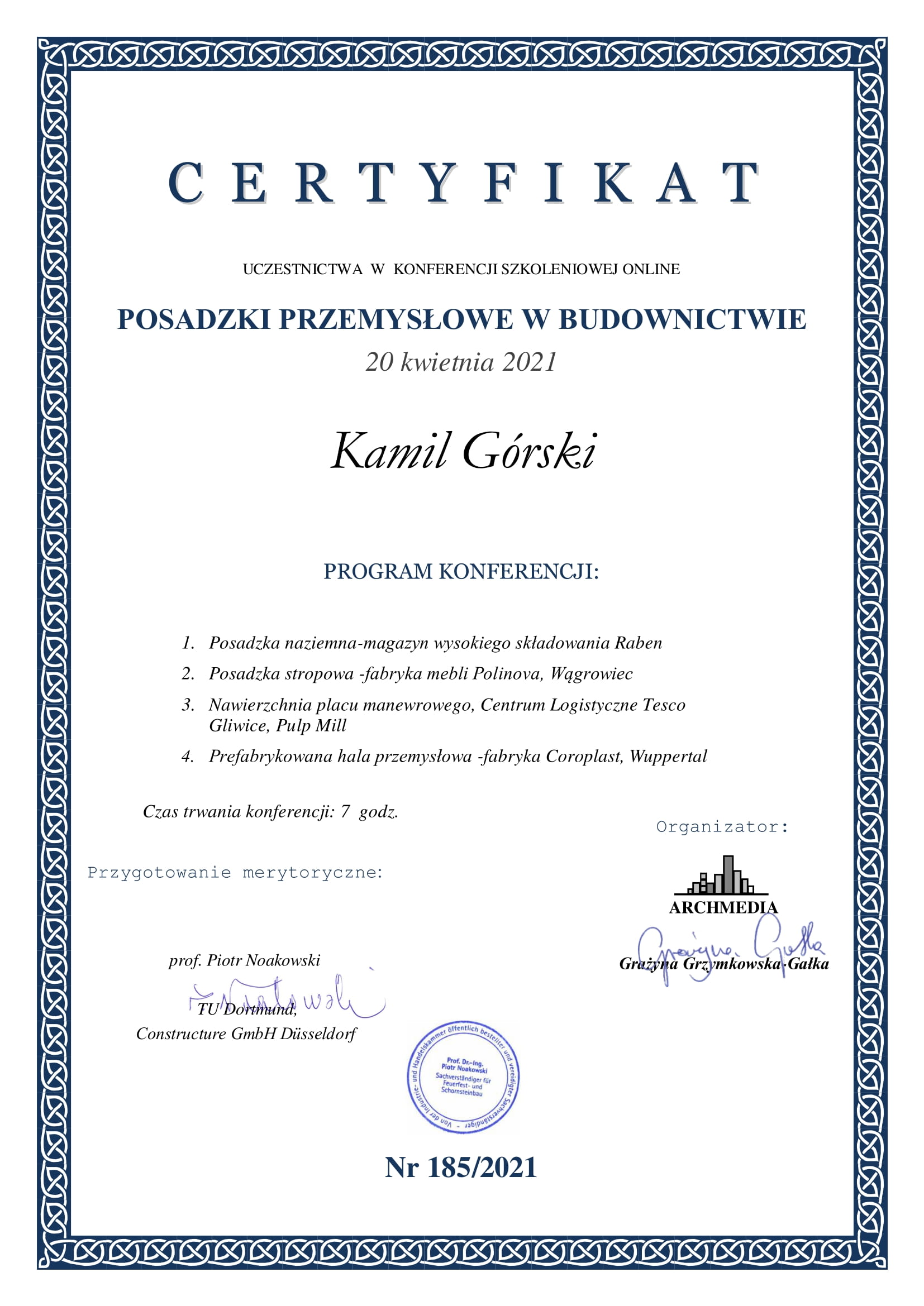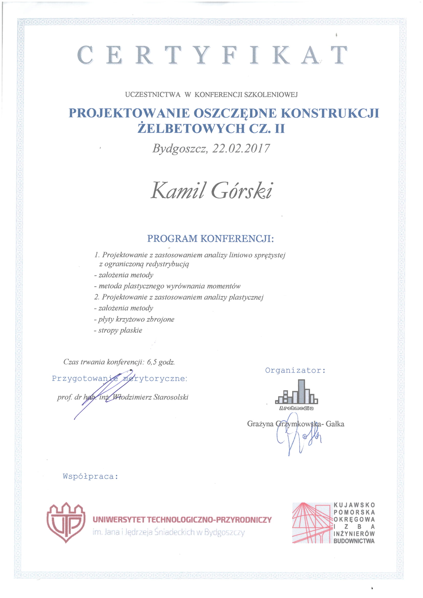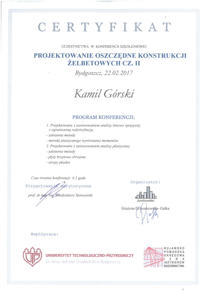 Certyfikaty uczestnictwa w konferencjach