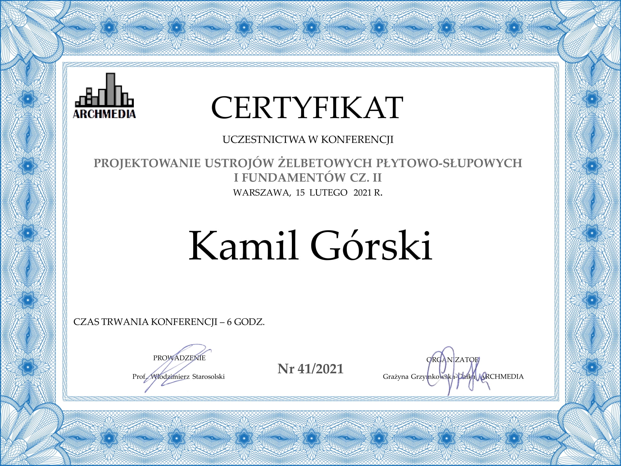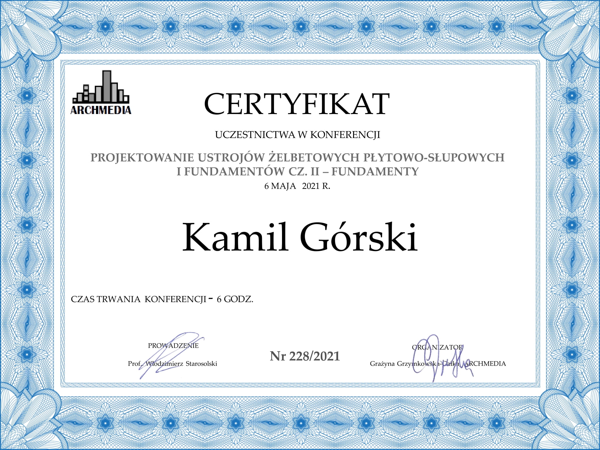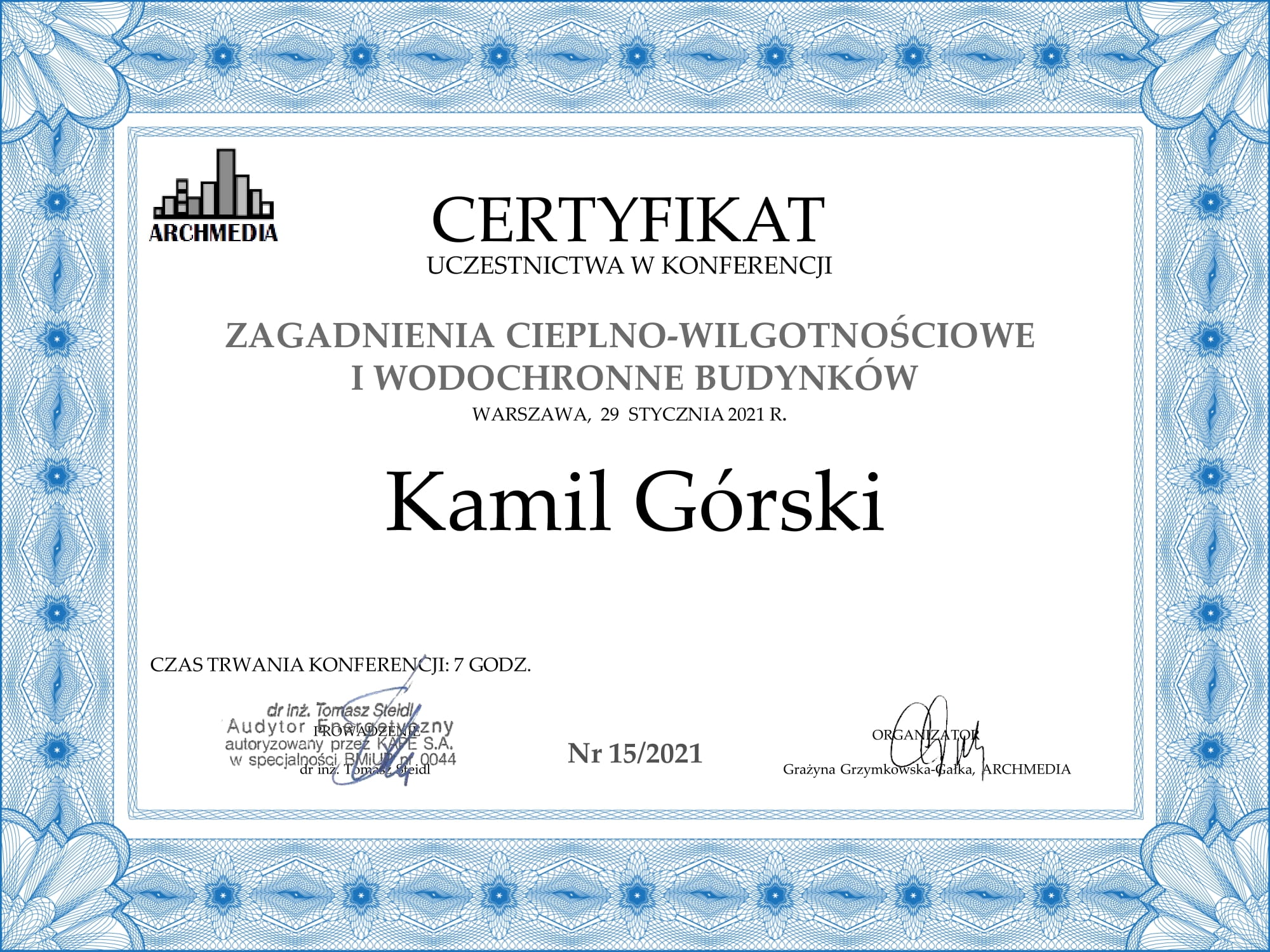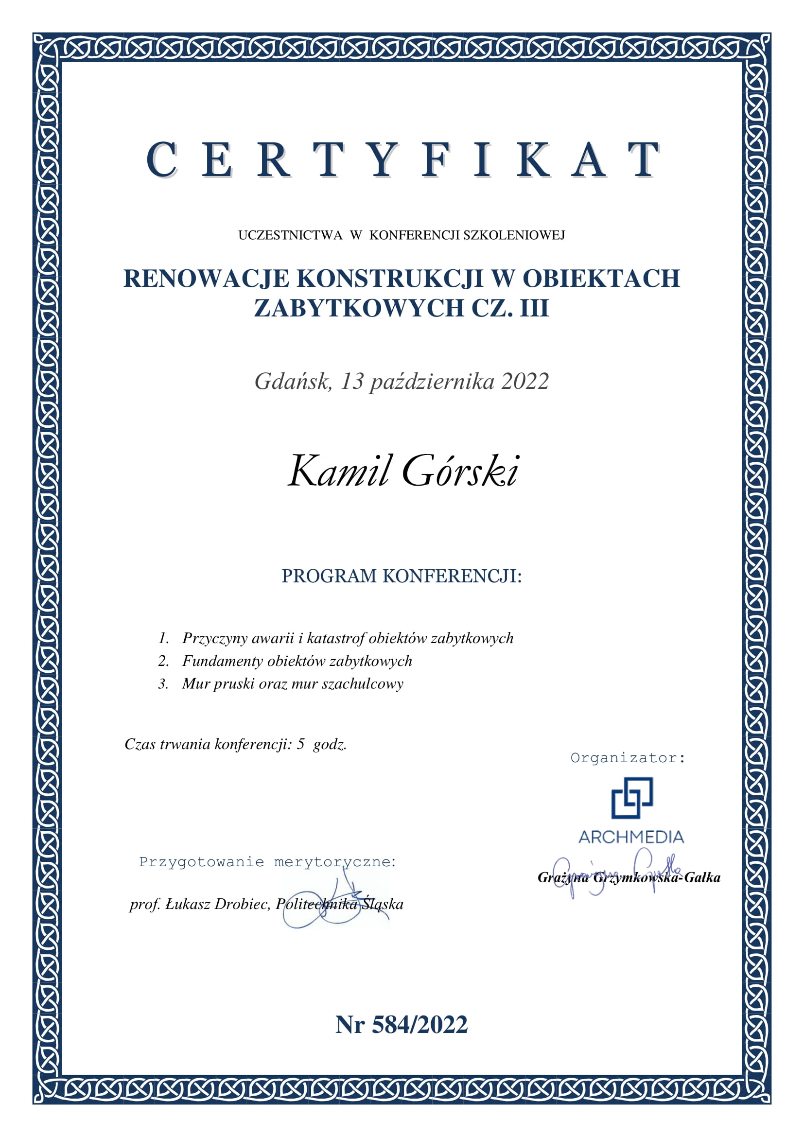 Certyfikaty uczestnictwa w konferencjach