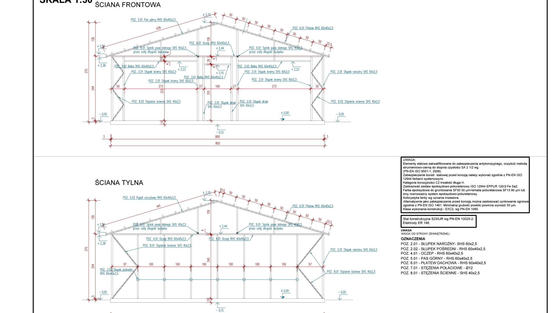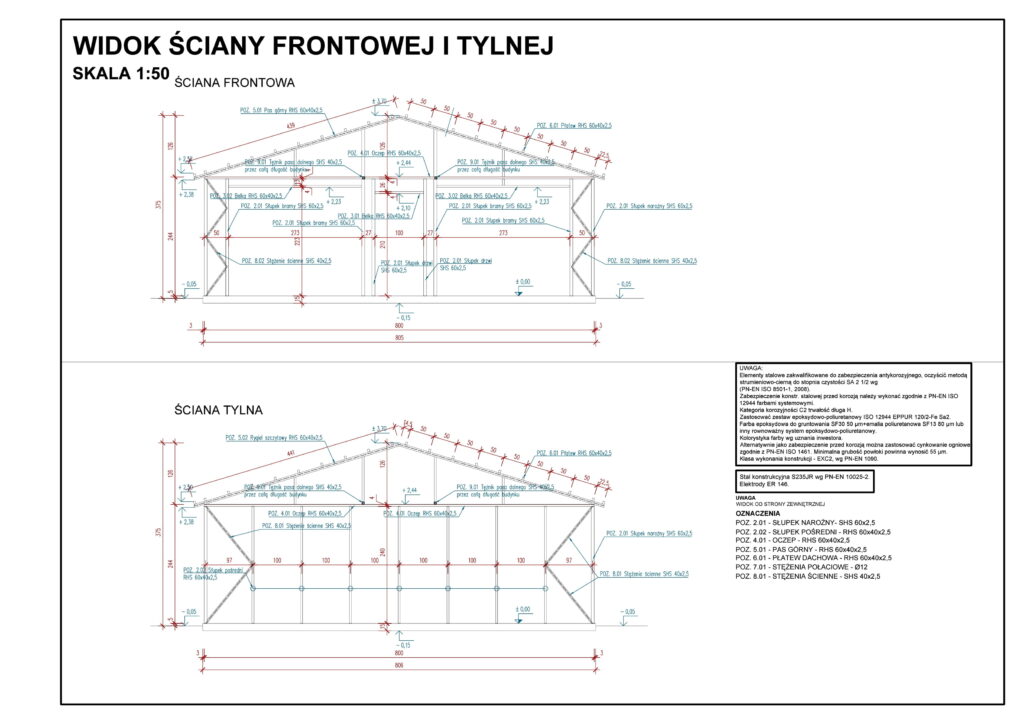 Budynek gospodarczy o konstrukcji stalowej – widok ścian