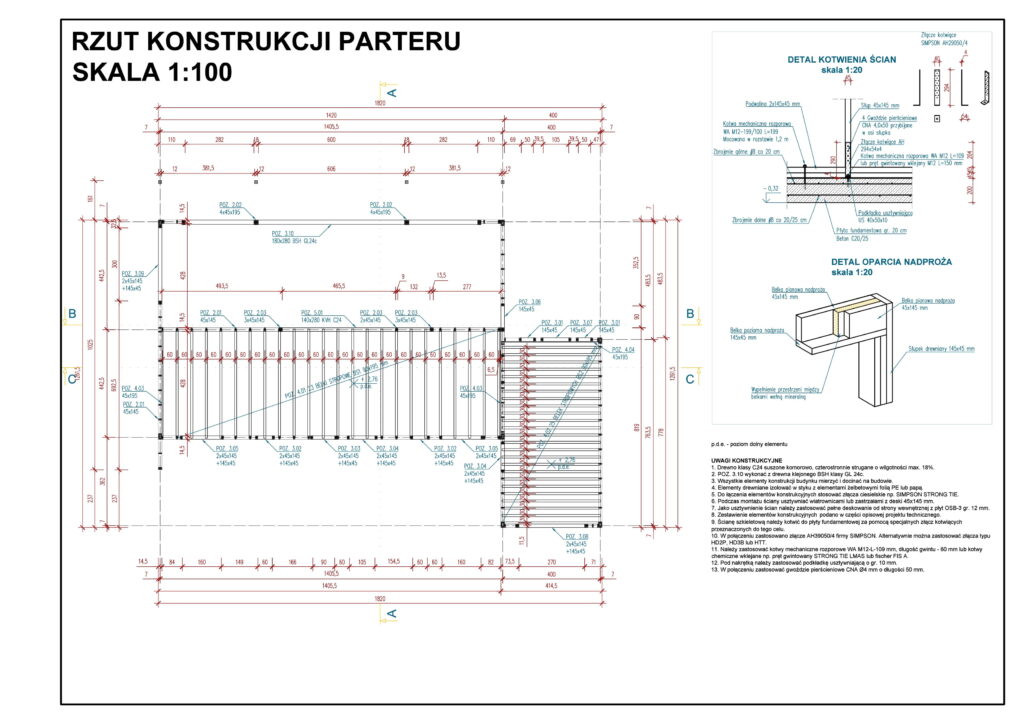 Dom szkieletowy drewniany – konstrukcja parteru