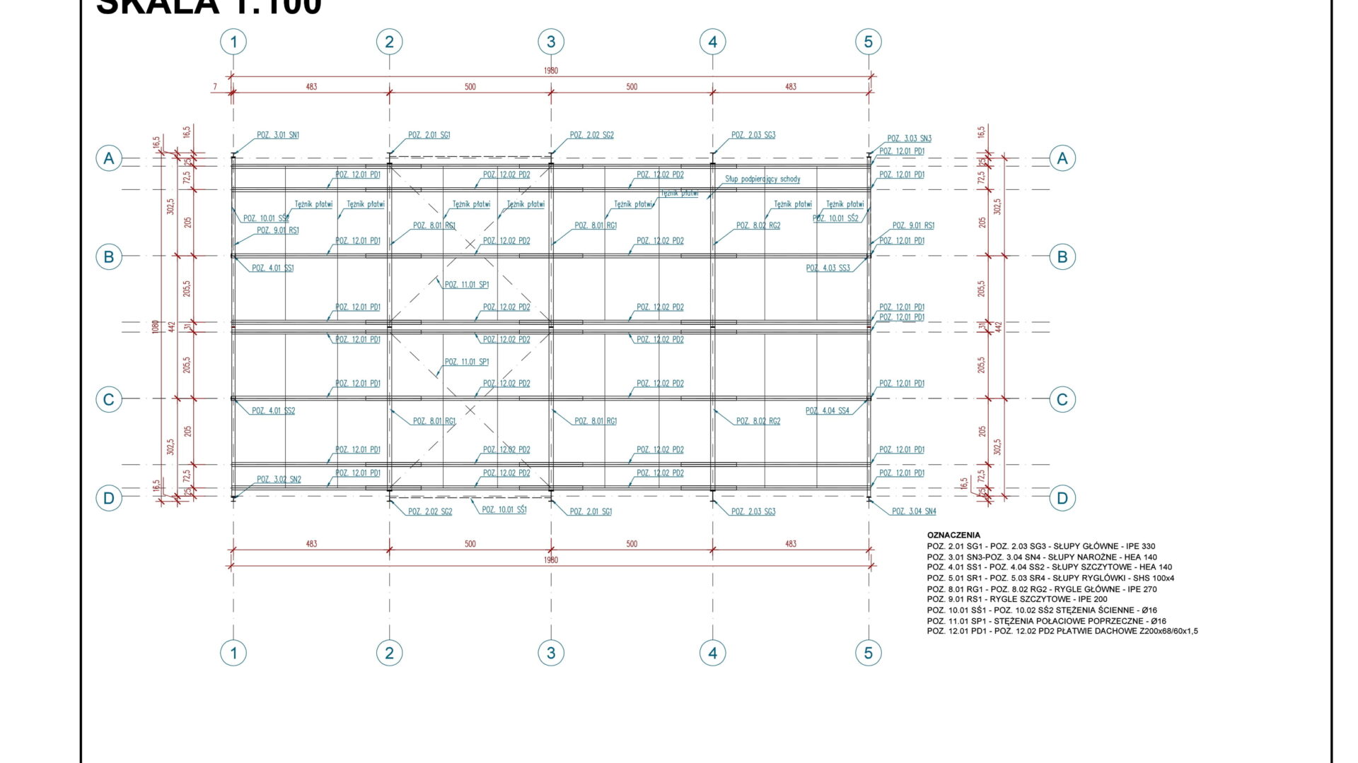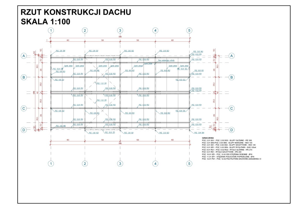 Hala stalowa – rzut konstrukcji dachu